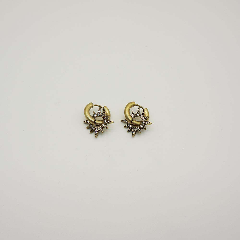Aros Humana Free argollas doradas que pertenecen a la colección Zodiac Vibes. Son argollas pequeñas que contienen soles con brillos de fantasía.